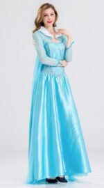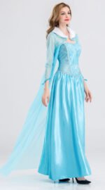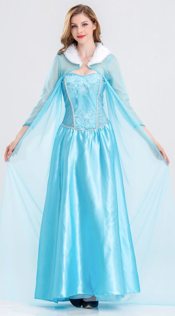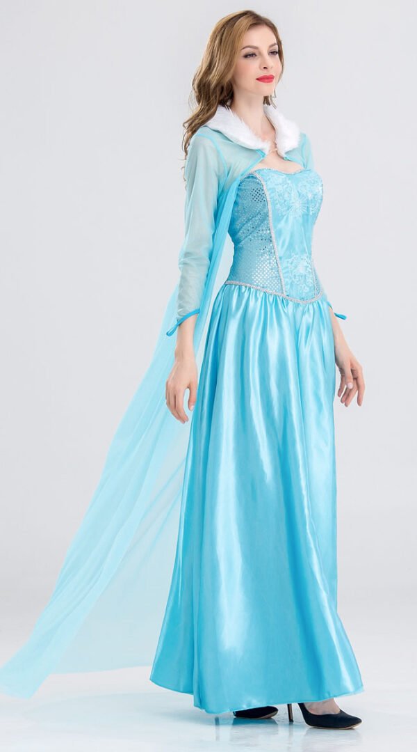 Klä ut dig som din favoritprinsessa i den här frost prinsess elsa dräkt omfattar en glittrande blå helklänning med organza och paljett, kap med fuskpälskrage.